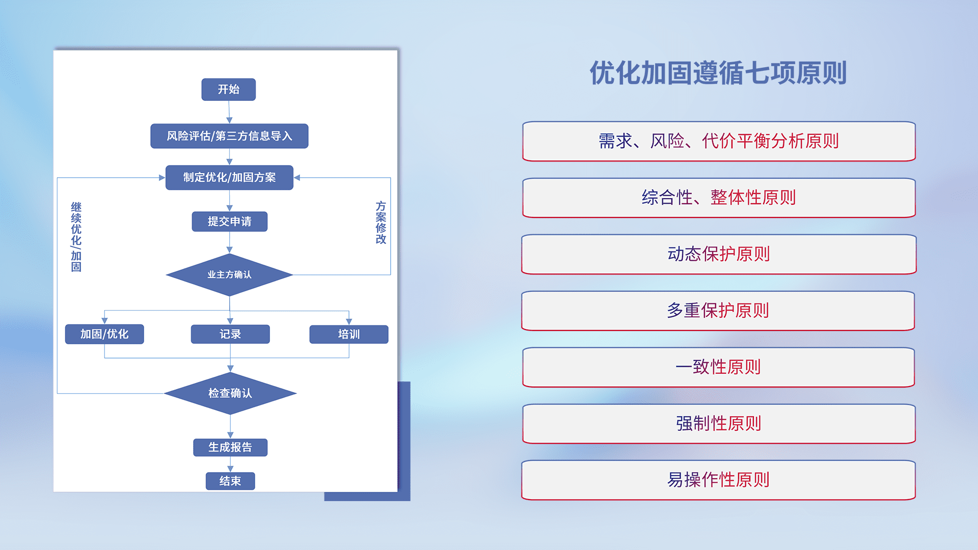 最大程度利用现有资产,,,对评估发现的问题进行封堵与整改,,,,防止漏洞被利用,,,,提升整体网络安全性,,,为客户带来高标准的优化加固服务。。。